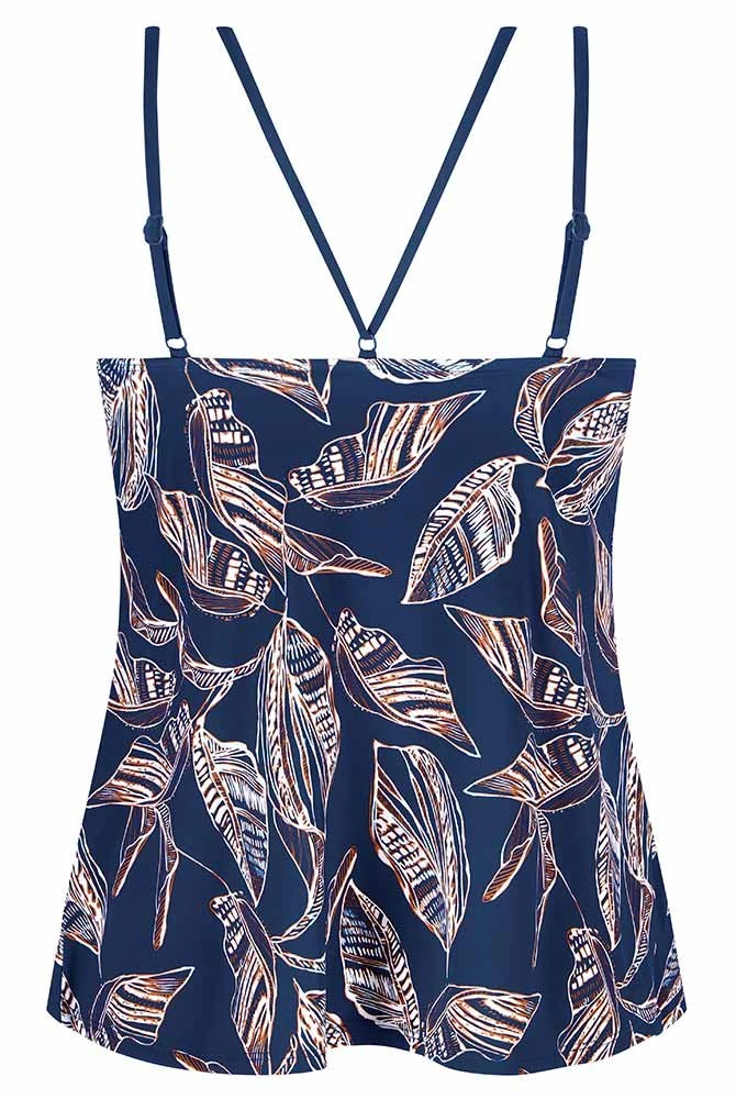 Breast Care Tankini Oberteil Lanzarote von Amoena bietet einen elegant platzierten Blätterdruck auf dunkelblauem Grund und wird damit zu einem eleganten Hingucker. Der runde Ausschnitt des funktionalen Prothesen Tankinis wirkt harmonisch. Der Schnitt in A-Linie schmeichelt Ihrer Figur. Doppelte schmale Träger sind verstellbar und optimieren die Passform. Das hochwertige Material bietet einen ausgezeichneten UV-Schutz und damit optimalen Schutz für empfindliche Haut. Elasthan sorgt für eine lang anhaltende Passform und Formbeständigkeit, mit hoher Chlorresistenz. Ein stützendes Bustier mit beidseitigen Prothesentaschen und weich gepolsterten Cups hält Ihre Schwimmprothese sicher verwahrt.