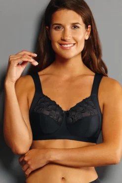 Das besonders edle und feminine Bikinioberteil ist aufwändig verarbeitet. Raffinierte Extras beim hochwertigen Bikini-Oberteil von Anita Comfort geben ein angenehmes Tragegefühl, ausreichend Bewegungsfreiheit und eine insgesamt brilliante Optik. Genießen Sie Ihren Auftritt mit dem tollen Bikinioberteil Hermine mit seitlich verstärkten Cups, die den Busen mittig zentrieren. Schmuckring zwischen den Cups und Drapierung am Dekolleté geben dem Bikinioberteil in Farbe Schwarz Raffinesse und eine außergewöhnliche Note.