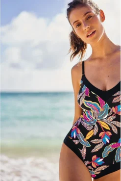 Unwattierte Bügel-Cups optimieren die Passform und geben Halt. Das weiche und qualitativ hochwertige Material schmiegt sich angenehm an die Haut und trocknet schnell. Ergänzt wird die Lidea Serie durch eine passende Bikinihose oder alternativ durch unifarbene schwarze Badehosen.