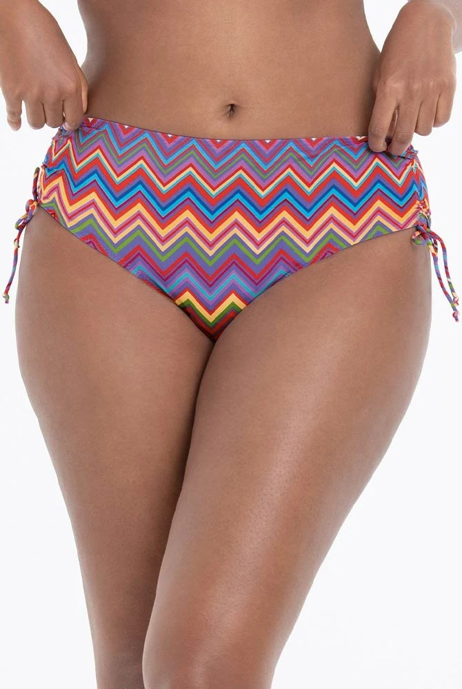 Chic und mit modischer Raffinesse wird Sie unsere Bikini-Hose der Serie Magic Wave von Anita beeindrucken. Mittels der seitlichen Bänder können Sie den Bund in der Höhe variieren. Weich schmiegt sich das elastische Material an Ihre Haut. Der Beinausschnitt ist moderat und dadurch kann nichts verrutschen. Die hübsche Badehose mit modernem Zickzackprint passt wunderbar zu Bikini Oberteil Laila der gleichnamigen Serie. Oder kombinieren Sie zu der komfortablen Badehose ein unifarbenes Oberteil, zum Beispiel einen Bikini oder ein Tankini Oberteil.