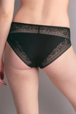 Schwarze anschmiegsame Bikini-Hose Liz mit hübschem Bundabschluss